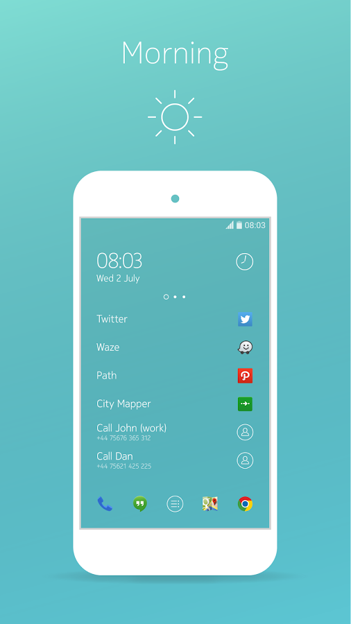 Throughout the day, Nokia Z Launcher is learning how you use your phone and promoting your favorite apps so you can get to them faster. The more you use it, the better it gets.