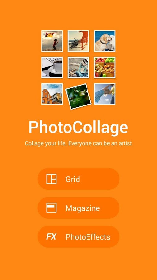 Step 1: Launch PhotoCollage then tap Grid, Magazine, or PhotoEffects, then select photos from your device or external SD card.